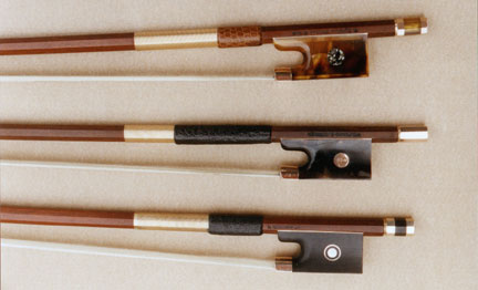 ![]() German and French Pernambuco wood violin bows, SEK 2 500 and up In the 1820:ies, a German bowmaker tested more than 120 kinds of wood. The result was that the Permambuco wood from Brazil was by far the best wood for string intrument bows. Good Pernambuco bows are dynamic and direct in action. They convey your motions directly whether You play softly or energetically. Depending on price the metal parts are silver plated or made of silver or gold. At present, I offer a small selection of gold mounted bows at reasonable prices. Please contact me for more information. |